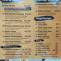 Please check prices with the restaurant before ordering. Deep fried chicken bites coated with Mamak curry flavour B5 LAKSA TOFU SOUP 900 Spicy Coconut Soup Chicken Stock Based with fried Tofu SAYUR B1 CHILLES BEANSPROUT 1200 Stir fried taukeh with chillies chives B3 SAMBAL GREEN BEAN 1300 Stir fried green beans with spicy belacan shrimp paste B4 SEASONAL VEGETABLES 1200. Menu Skip to content.